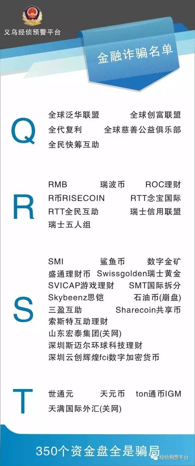 温州书画宝骗局,浙江世尊,炎黄文交所骗局,南京钱宝网理财骗局,号称年收益率72%,胜威国际集团,MMM理财骗局,云世纪SKY理财骗局,御花园理财骗局,马来西亚保绿木拆分盘,中民福祉无忧天使互助平台,金汇泰网络互助,fifa精算投资优选平台,鸿遵付,各种邮票电子盘、原始股骗局。